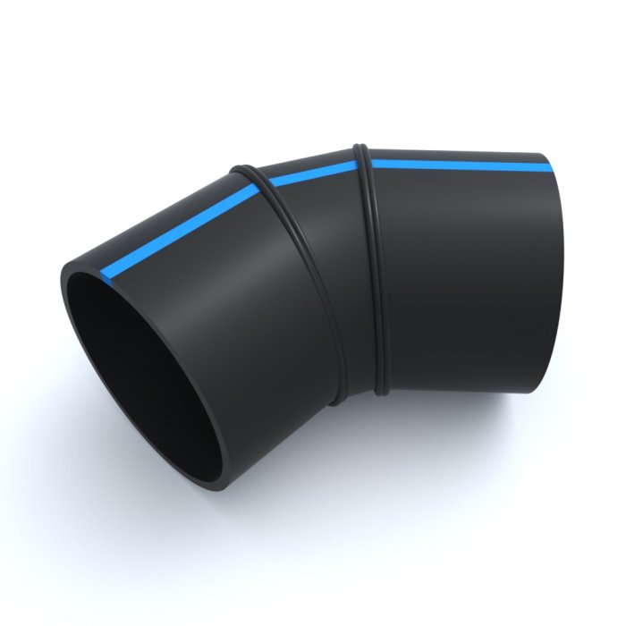 Отвод сварной ПНД 45º 560x350x523x300 мм SDR-21 используется при выполнении прокладки трубопроводов под разными углами.